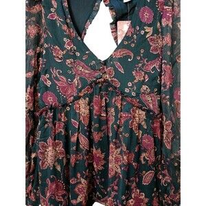 Band of the Free BOG Dress Small Run the World Pine Berry Boho Floral Flowy Midi