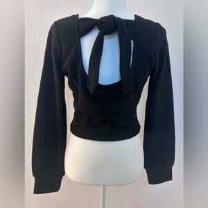 Band of the Free Black Ribbed Long Sleeve Tie Back Size Large