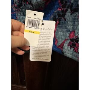 Band of the Free Blue Floral Key Hole Back Square Neck Crop Top Women Sz M