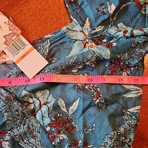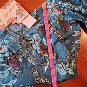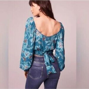 Band of the Free Crossover Bohemian Balloon Sleeve Crop Top, Small, Deep Teal & Red Floral in New with tags condition. Sybille Teal Floral Crossover Crop Top is Sold Out Online