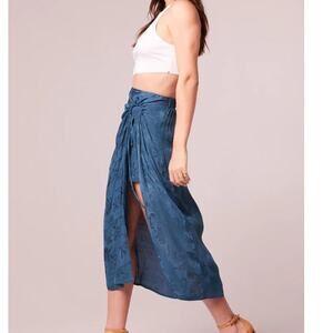 Band of the Free Celene Deep Teal Layered Midi Skirt XS Front Slit Tie Boho NEW