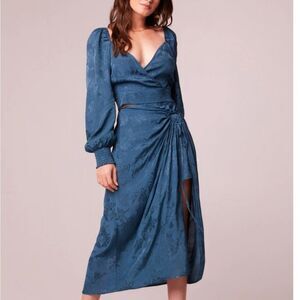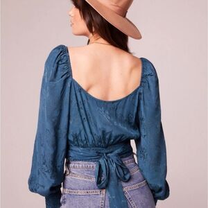 NEW Band of the Free Celene Bohemian Satin Floral Layered Midi Skirt & Crop Top Outfit, Small, Deep Teal in New with tags condition.