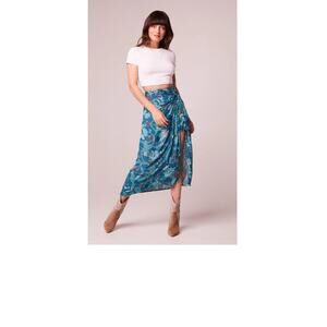 Band of the Free- Celene Teal Floral Layered Midi Skirt Front Slit Tie Detail Bohemian in Size Large