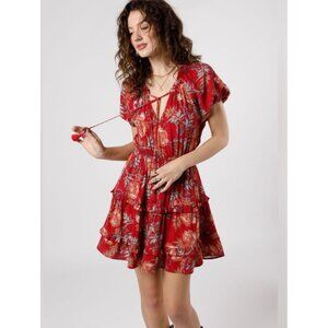 This is a Band of the Free Connie Garnet Blush V Neck Boho Tiered Dress.