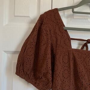Band of the Free (FKA Band of Gypsies) brown smocked eyelet boho top XS