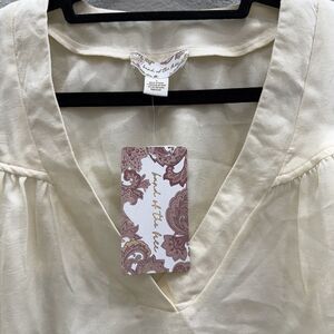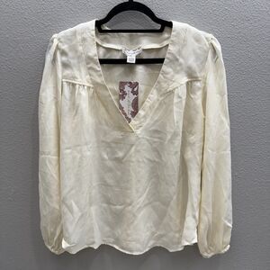 Band of the Free Ivory Blouse Women's Size S V Neck Long Sleeve Flowy Bohemian