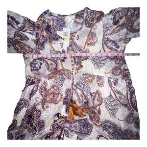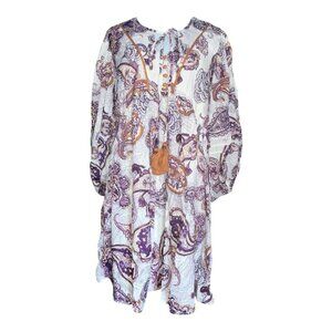 Band of the Free Lyonette Paisley Boho Mini Dress in Cream & Purple, Medium. NWT