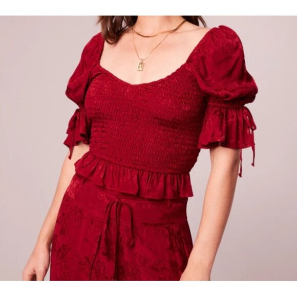 Band of the Free NWT Lea Rhubarb Smocked Crop Top Sz Medium Red Rhubarb Puff Sle