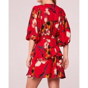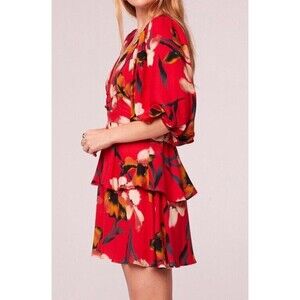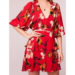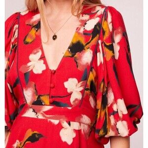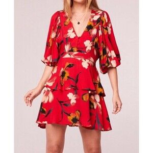 Band of the Free Red Floral Mid Length Puff Sleeves Ruffled Mini Dress Small NEW