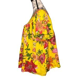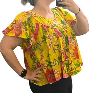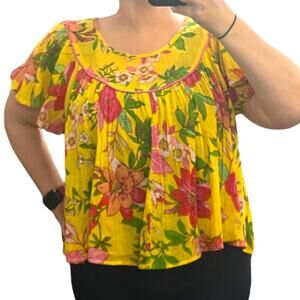 Band of the Free SMALL Short Sleeve Raised Trim Floral Billowy Hem Blouse Top