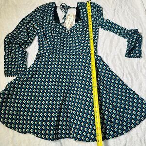 Band of the Free Size M Teal Diamond Mini Dress Skater Boho Gypsy Skater Coastal