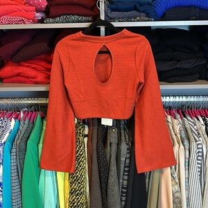 Band of the Free orange long bell sleeve keyhole back crop top size XS NWT