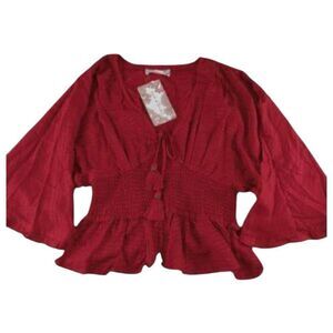 Band of the Free Cropped Tasseled Red Boho Blouse New Med
