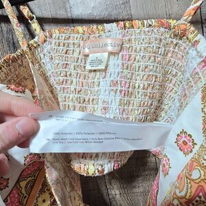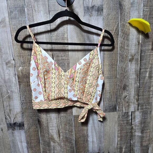 Details: smocked back, v neck with modesty clip, adjustable spaghetti straps, lightweight, cropped