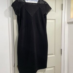 Preloved- Black dress 95% polyester 5% spandex length 39 inches. Professional Dry clean only