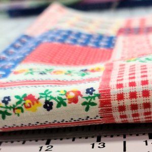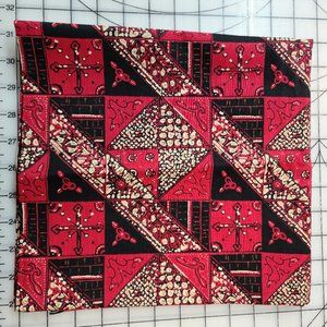 VINTAGE BANDANNA FABRIC COTTON "2 PIECES + 1 REMNANT" 2 DIFFERENT PATTERNS! *THIS LISTING IS CROSS-LISTED*I am listing these as USED because one piece has been cut. They are technically new, BUT used, as in the one being cut. One is Black and Red Bandana Squares Print and the other is Patchwork Bandana. Both are very nice. They are going to be listed and Number 1(one) and Number 2 (two) One - Is the Black and Red Bandana Squares Print Fabric. The first 5 pictures. 1 yard +5 1/2 " 45" wide, cotton, lightwei colorful and unique pattern. A great little fabric to use for crafts, Quilting, Pillow, etc...Number Two - Patchwork Bandana Fabric. 1 piece 1 yard, 45" wide, cotton. The other piece is the remnant and HAS BEEN CUT (the last 9 pictures). 1/4-yard, 45" wide. Very colorful, lightweight. It is still a nice size piece of fabric, even though it has been cut. This would be great for crafts, Quilting, curtains, etc...