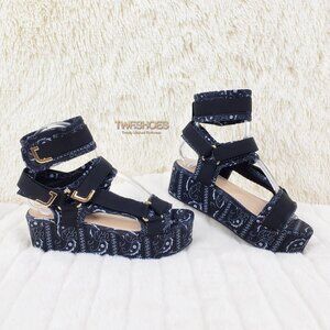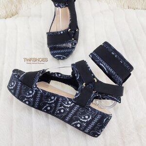 Bandanna 2" Platform Sandals harness strap shoes Black Bandana