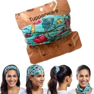 New multi purpose beach themed bandanna headband from Tupperware in teal blue Utopic Shore print.