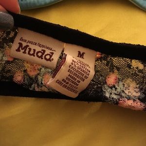 Two bandeaus, one in baby blue and the other black and floral. Both size medium, and come together for a low price!