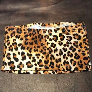 Cheetah print bandeau crop top with Guns & Roses print on front.