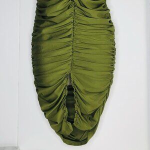 Bandeau Ruched Knees Length Dress Olive Green Cocktail Date Night Event Elastic