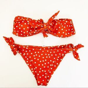 Bandeau Style Low Waist Polka Dot Bikini Set, Orange Size XL/10 NWOT