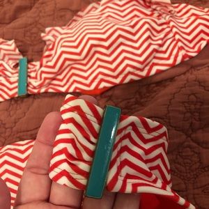 Cute coral and white chevron with turquoise accents, adorable suit!!!