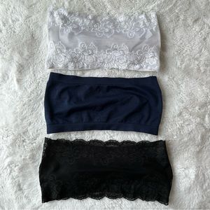 3 bandeaus! One navy, one black with lace back, and one white with lace back