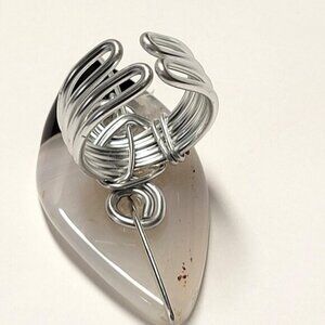 Banded White Black Agate Polished Ring Adjustable Band Semi Precious Ring