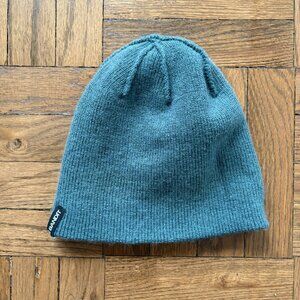 Fine gauge ribbed merino wool beanie in turquoisey 'atlantic' colorway. Classic fit with woven jacquard logo clamp detail at rib cuff. Equally cozy and elevated.