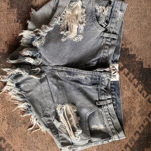 The LOW WAIST BANDIT low waist denim shorts are a cult classic from One Teaspoon. These iconic shorts feature a relaxed fit and slouchy silhouette, designed to sit low on the hips for a carefree, casual look. The large patch pockets add a functional and stylish touch, while the signature twisted and rolled hem gives them a distinctive bandit-inspired edge.