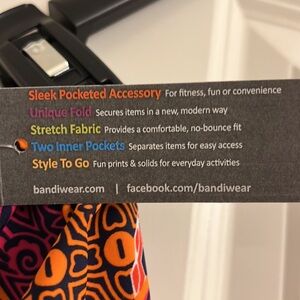 Bandiwear waist belt. Fits just below the waist. Great to take shopping and out your cards and license in it securely. Great gift idea for the avid shopper. Keeps your hands free to shop!!