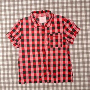 Ban.do short sleeve pajama top in gingham / buffalo plaid. Red, pink and dark green with red trim. Front pocket, button closure and Peter Pan collar. So cute for spring and summer! 100% cotton. Twee. Labeled small but check your measurements! *TOP ONLY, no shorts