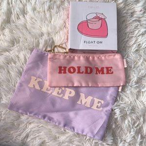 Includes 2 small travel bags and heart-shaped drink floaties. All new, never used.