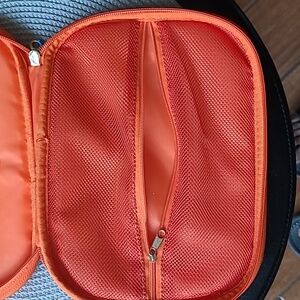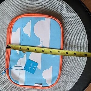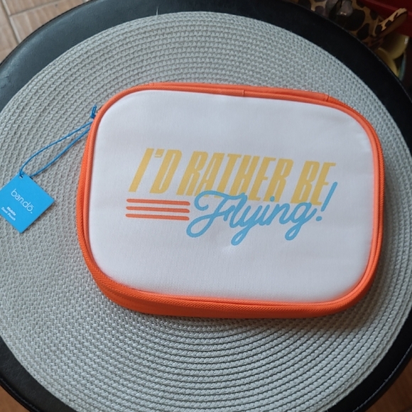 I'd Rather Be Flying White pouch with vibrant Orange trim, interior zippered mesh pocket, elastic loops