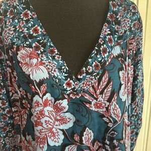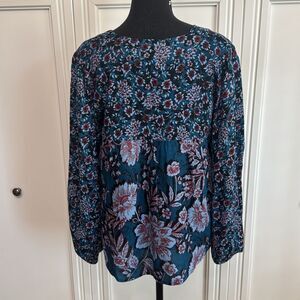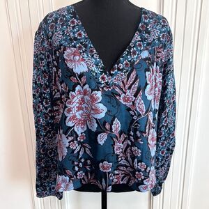 Band of the Free Blue Floral Long Sleeve Blouse Relaxed Fit