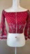 Band of gypsies, red paisley print, red, green, brown with elastic waistband, tassels and bell sleeves with elastic and pon pon ball accents.