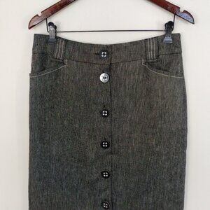 Bandolera Linen Blend Skirt Size Euro 38 Gray Lined Vintage Classic Buttons.