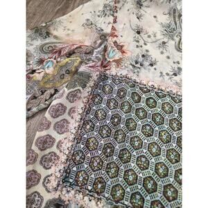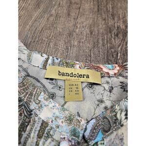 Bandolera NEW Sheer Blue Print Top Blouse Button Front Long Sleeve Medium