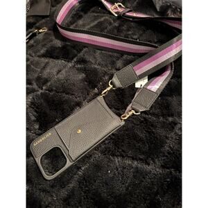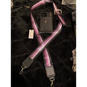 Bandolier 15 pro max Haley wallet case & Thick nylon& leather purple skye strap