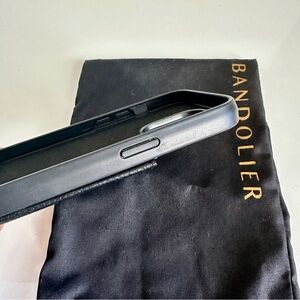 Sleek black phone case. Gold accents add elegance. Durable and stylish design.
