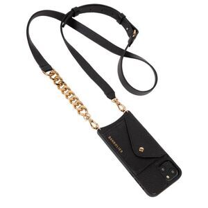 Bandolier anna black leather side wallet crossbody phone case black w/gold tone hardware iphone 13