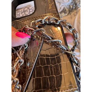 Side wallet style phone case (Kelsey/gia) & Includes ****** matching>>> NON BRAnDED <<< shoulder strap( - in Chanel style chain link weaved/woven w/the same color metallic leather )