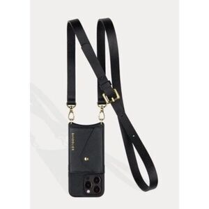 Bandolier 15 pro max black leather crossbody iphone case/belt/strap set