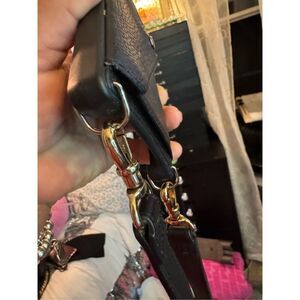 Includes ; 1x 1” black leather twin strap (w/out coordinating gold curb chains) crossbody belt/strap adjustable w/2 accessory holders (d rings)- goldtone hardware (Guc no rips stains etc real leather)
