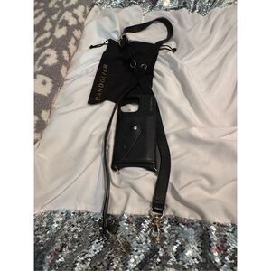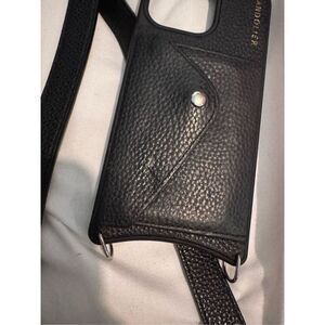 Bandolier crossbody twin 1l” black leather strap +iPhone 15 pro max wallet case