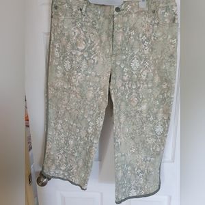 NWOT. Bandolino green flower pattern capris. Tried on never worn. 98%cotton and 2%spandex. Size 18.