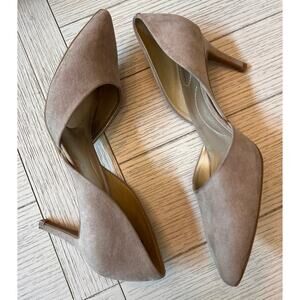 Bandolina tan suede like 3" heels. Textile upper. Sz 9 ladies.