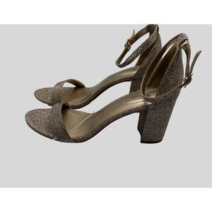 Bandolino 8M Glittery Gold Open Toe Heel Sandals Ankle Strap Buckle Closure