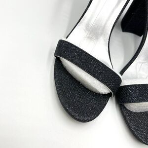 Bandolino women's Armory 2 sparkle textile dress sandals / heels. Colorway is Navy, but it is a very dark blue black shade.